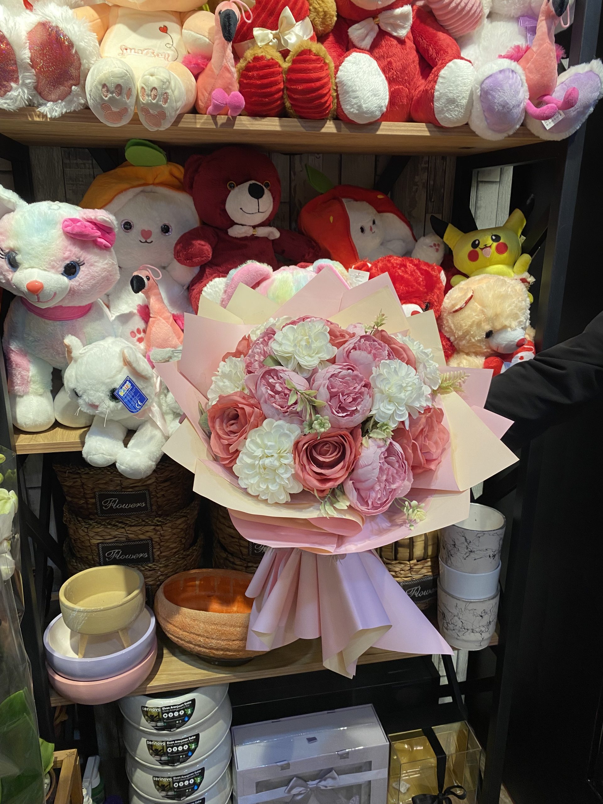 1. sınıf yapay çiçeklerle hazırlanan şakayık buketi