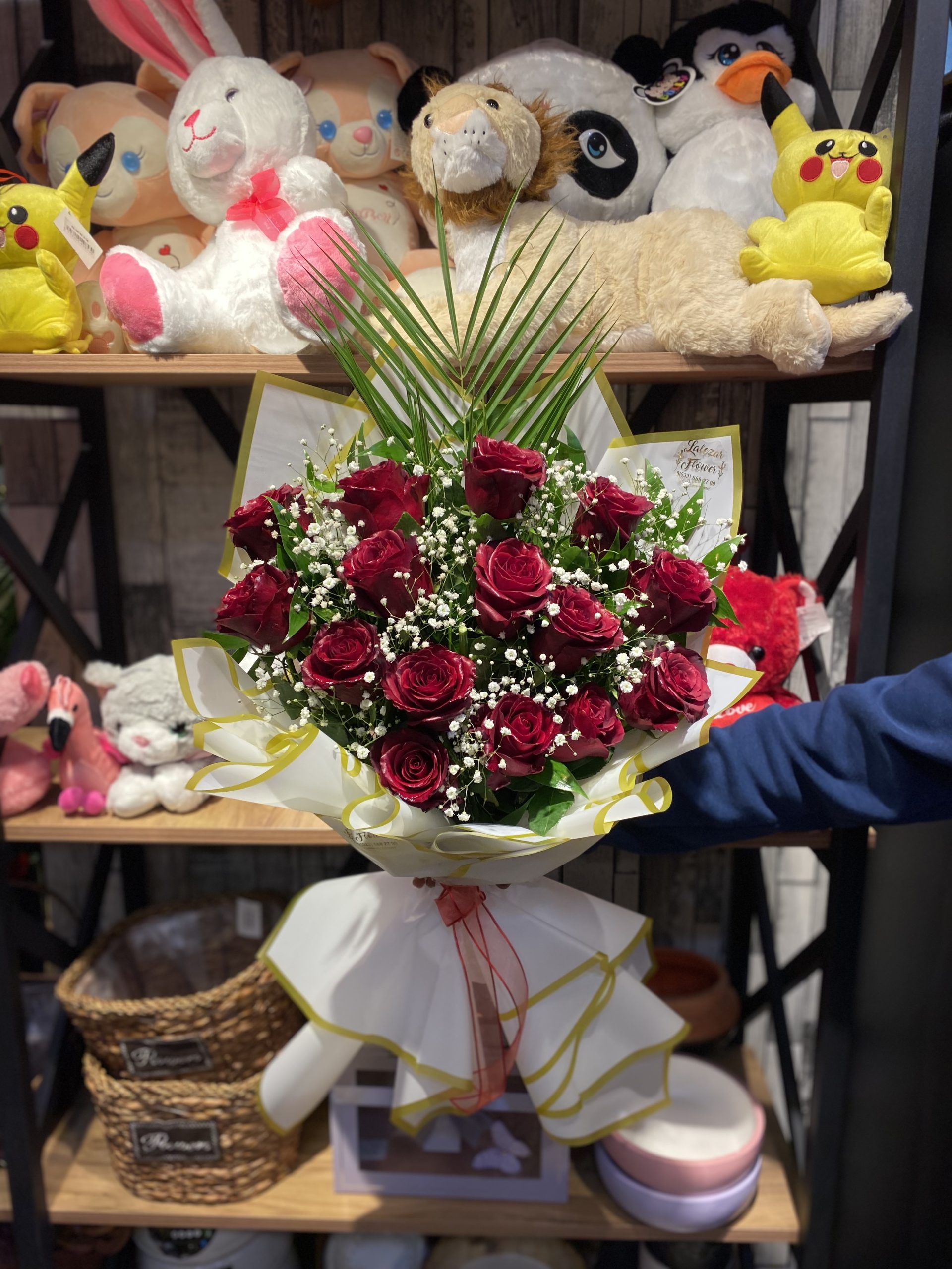 15 tane İthal gülden oluşan kocaman demet