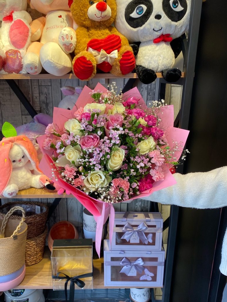İthal neon papatyalar ve kır çiçekleri ile büyük boy buket